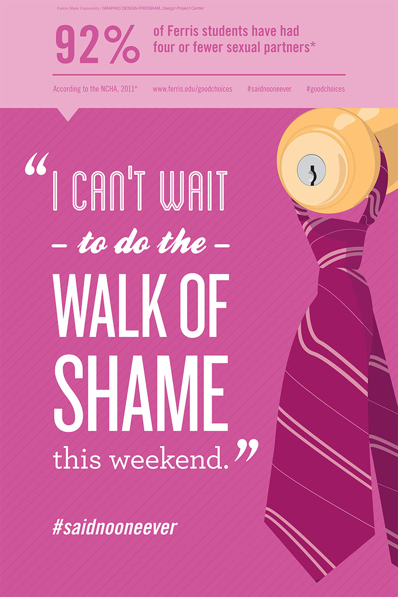 The Good Choices campaign strives to inform students about the statistics of various behaviors in order to change negative perceptions that enable bad social pressures. We created a poster series that plays off the #saidnooneever meme.